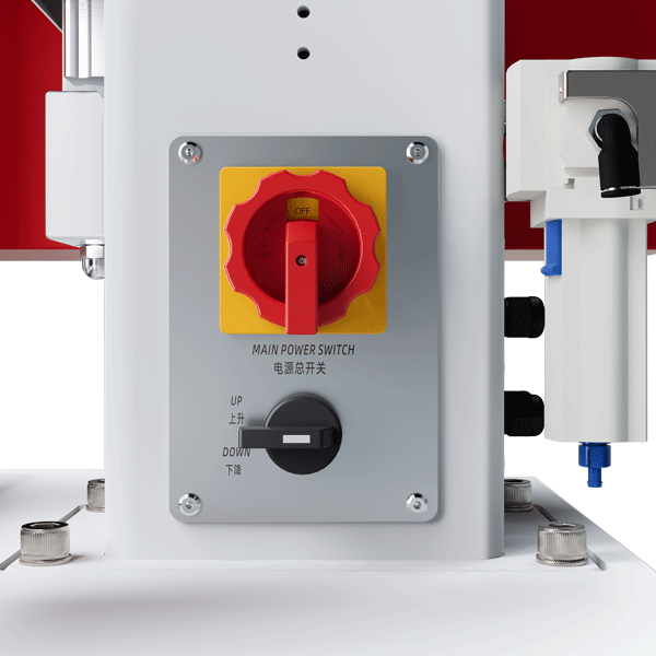 10、立柱右側(cè)設,機頭升降開關,便于調(diào)模對模,電源開關獨立控制